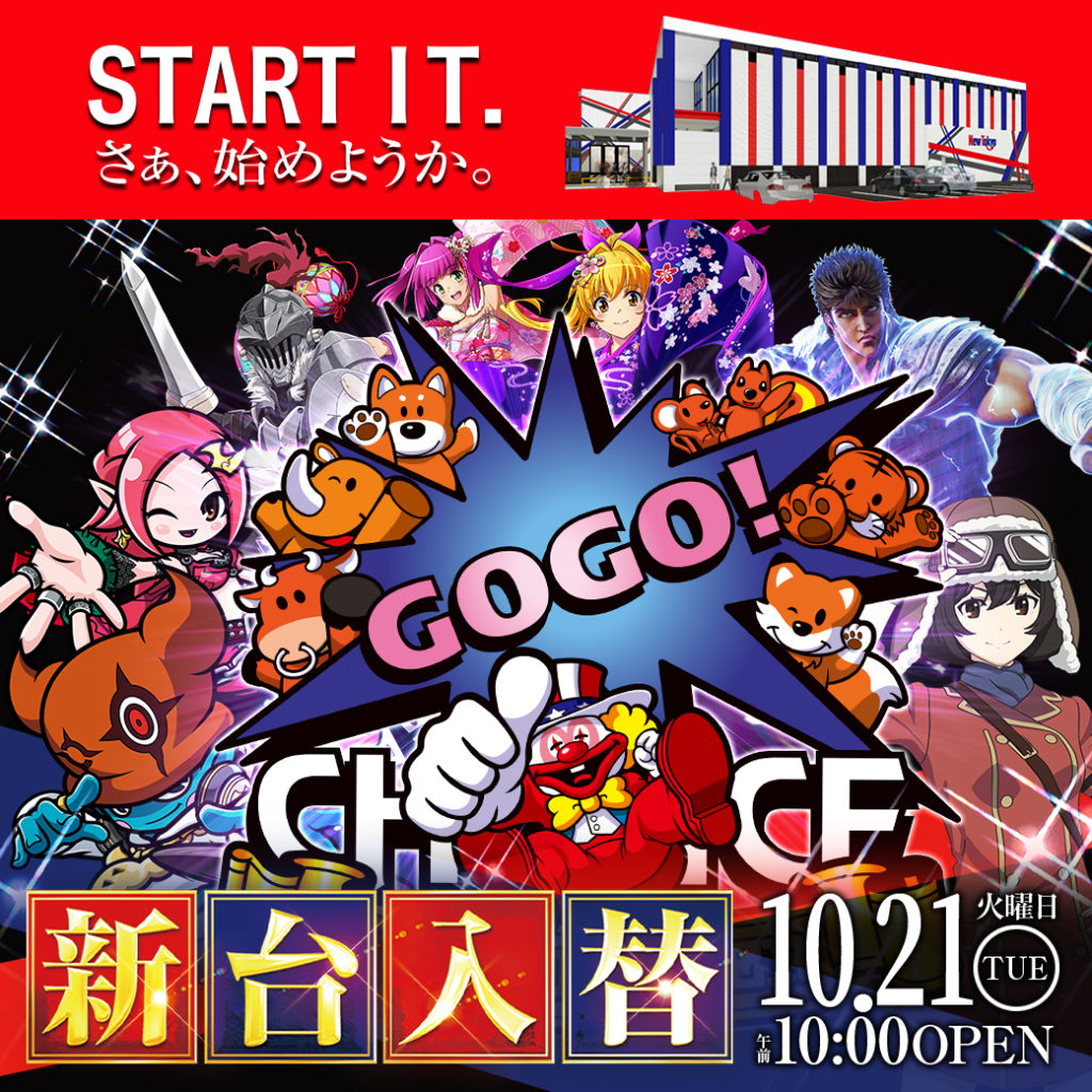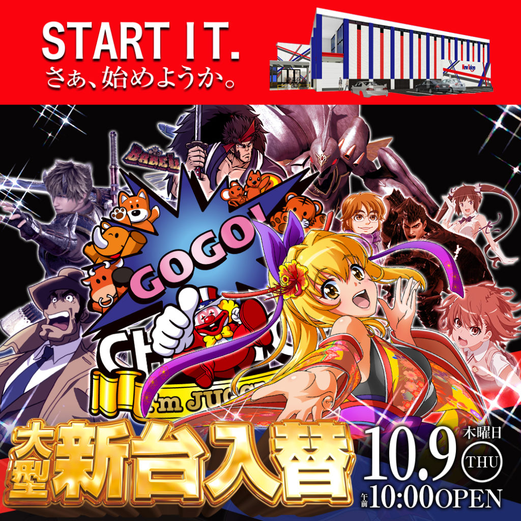 10/9大型新台入替OPEN! 皆様のご来店をお待ちしております!